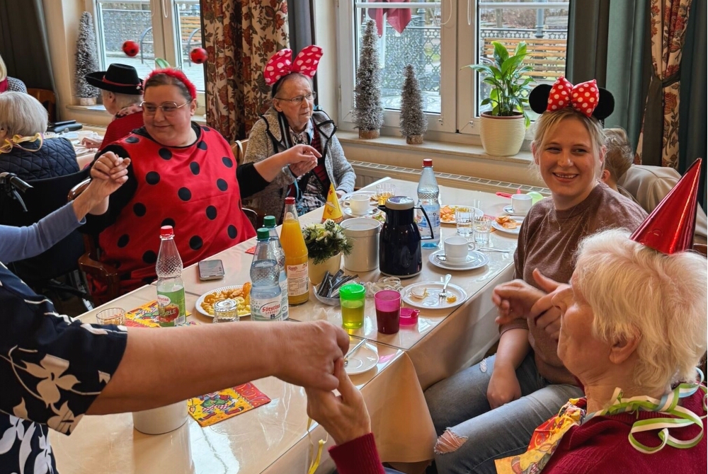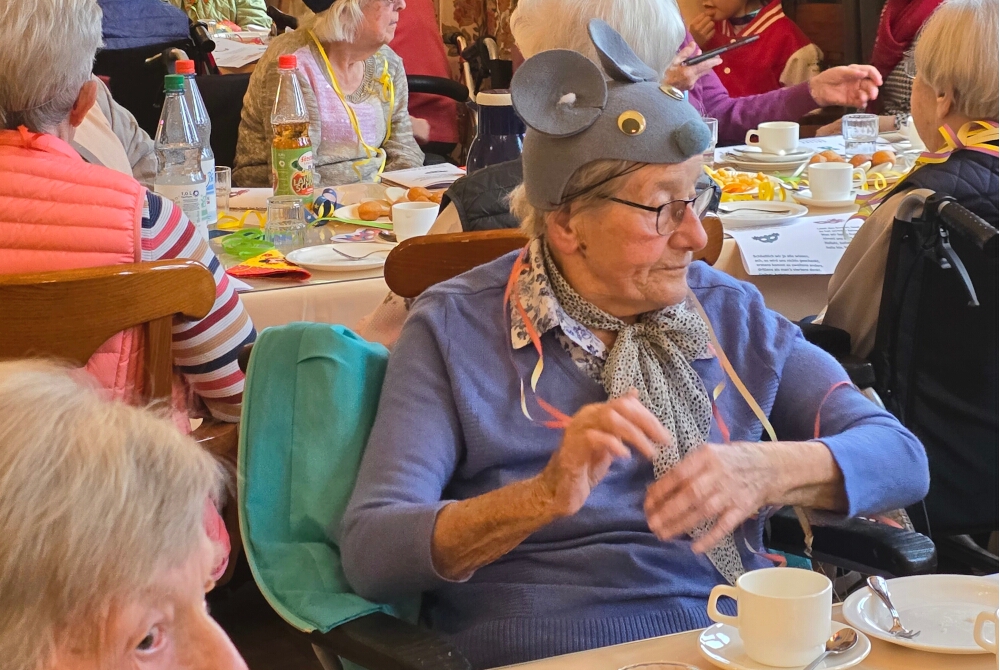 Beim Fasching gibt es keine Altersgrenze: Emotional berührt hatte die Anwesenden die Ehrung der ältesten Närrin im Saal, die 101-jährige Bewohnerin Brunhilde Passarge. Ihr hatte der Prinz persönlich einen Orden umgehangen, worüber sie sich sichtlich freute. Gute Stimmung war nicht nur ihr anzusehen, denn bei leckerem Essen und in bester Gesellschaft hatten alle viel Spaß. Die Residenzgemeinschaft ist sich einig: „Und wenn uns jemand nach der Feier fragt, was wir an diesem Tag gemacht haben, dann sagen wir einfach: Wir haben das Leben gefeiert – Helau Bad Salzschlirf!“