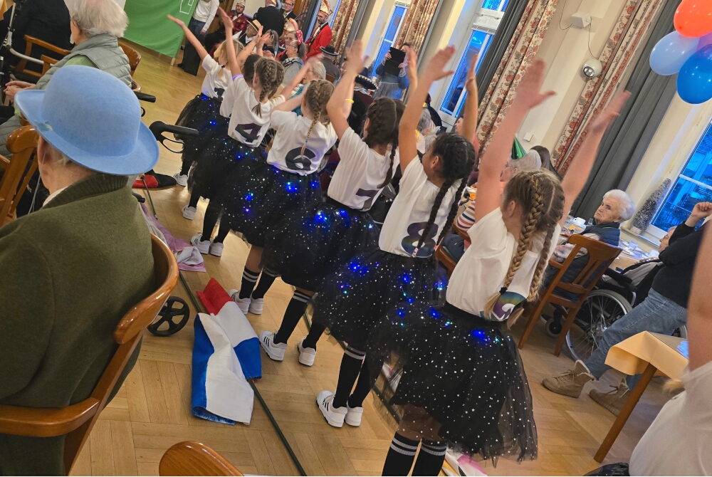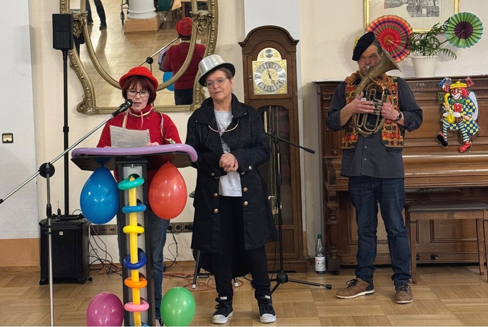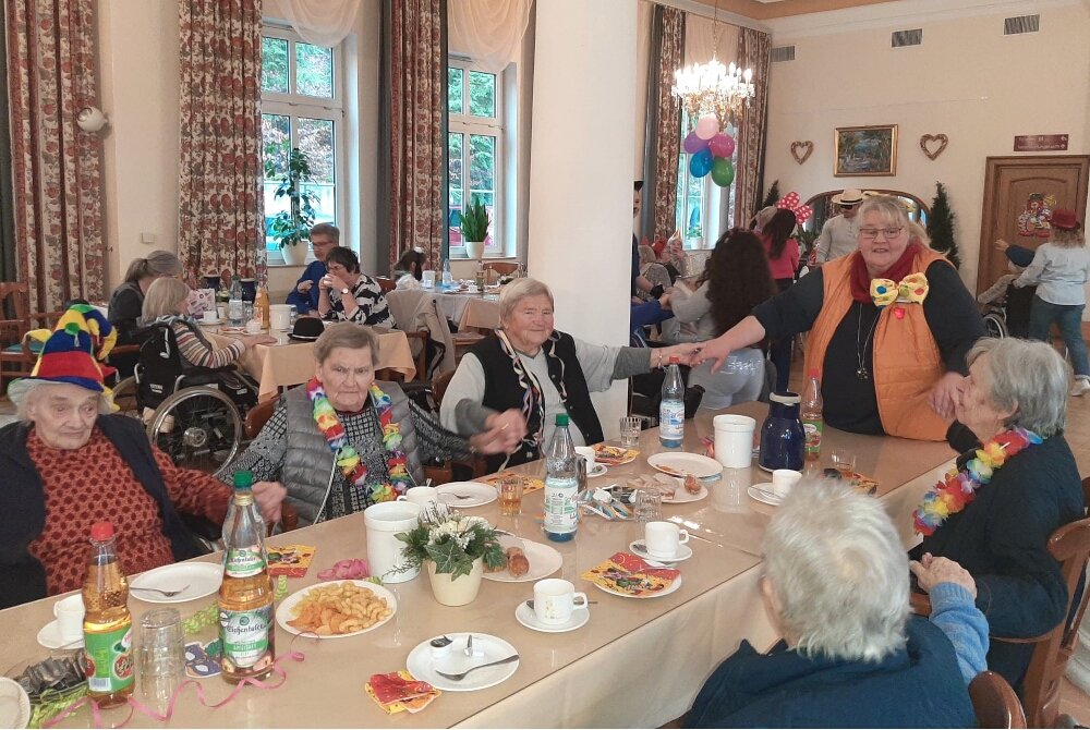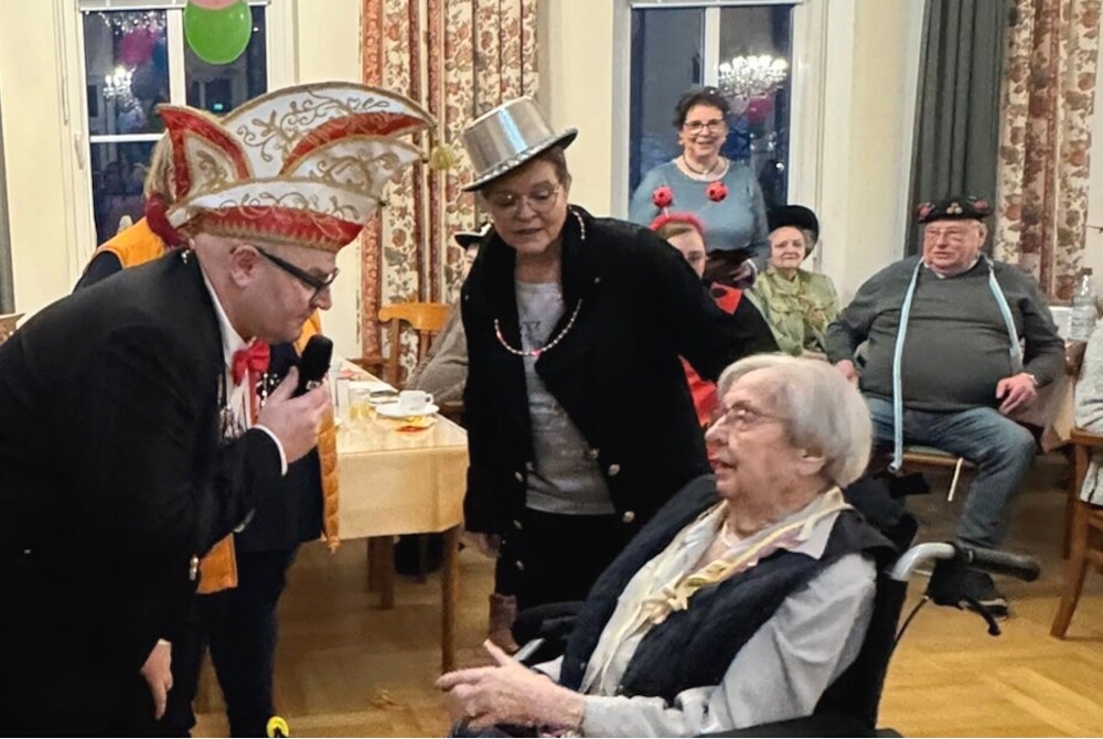 Kleine Tänzchen, fröhliche Polonaise, viele Lacher, Klatscher und Gesang: Im bunt geschmückten Festsaal der Residenz war der Nachmittag für die Bewohnerinnen und Bewohner nach einer herzlichen Begrüßung mit guter Laune losgegangen. Sie hatten schmunzelnd mehrere charmant und humorvoll vorgetragene Büttenreden gehört und waren auf die schillernden Gäste gespannt.