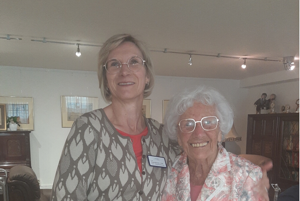 Schon lange Jahre ist sie Teil der Residenz-Gemeinschaft: 2011 zog Erna Tilli in eines der seniorengerechten Miet-Apartments ein und genoss tägliche Spaziergänge und jede Sonnenstunde im Kurpark auf der Terrasse. Das tat sie nach ihrem Umzug 2021 in den Pflegebereich auch weiterhin. Darin liegt vielleicht ihr Geheimnis, um fröhlich zu sein: Ihre positive Art ist im Haus bekannt und wirkt ansteckend auf Bewohnerinnen, Bewohner und die Mitarbeitenden – so wie bei ihrem 100. Geburtstag letztes Jahr.