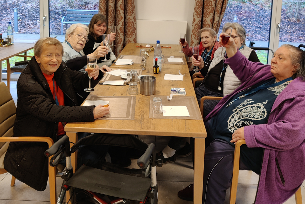 Für das leibliche Wohl sorgte das Küchenteam mit Häppchen, während Sekt und Orangensaft die Runde machten. Es wurde fröhlich miteinander angestoßen, und die Wünsche für Glück und Gesundheit gingen von Tisch zu.
