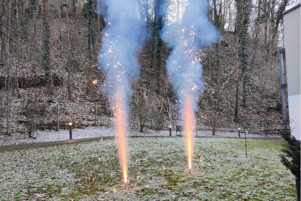 Literarisches rund um den Jahreswechsel: Für die poetische Note hatten die Feiernden Gedichte und Sprüche gehört, darunter Klassiker wie „Die zwölf Monate“ von Richard Rudolf Klein und das „Gedicht des Monats“ von August Heinrich Hoffmann von Fallersleben. Das war Literaturgenuss inklusive Jahresrückblick – ganz ohne Staub. Zum krönenden Abschluss sahen sie schließlich farbenfrohe Leucht- und Farbfontänen im Garten, gezündet von einem mutigen Mitarbeiter des Betreuungsdienstes, der damit bewiesen hatte: Auch ohne Mitternacht ist ein bisschen Silvesterzauber erlaubt.