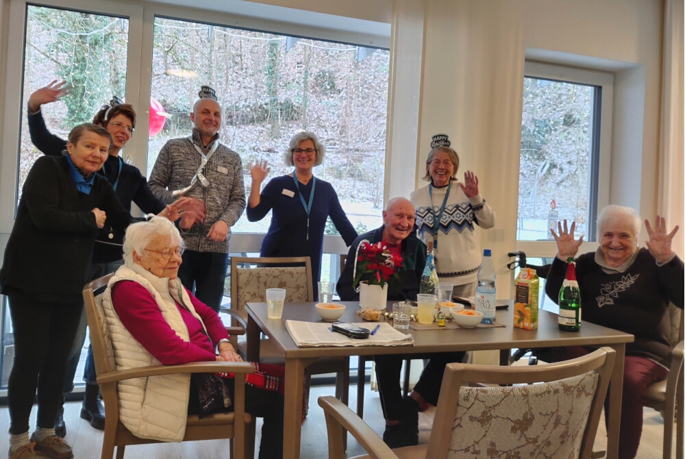 In der großen Runde blickten die Anwesenden auf das vergangene Jahr mit seinen Ereignissen zurück und erhielten Informationen über geplante Vorhaben wie Feste für das anstehende Jahr – da kam bei ihnen Vorfreude auf! Dazu passten leckere Häppchen, Sekt und Orangensaft, serviert vom Küchenteam. Die weitere Unterhaltung freute die Bewohnerinnen und Bewohner, wie Natascha Arras berichtet: „Die Mitarbeiterinnen des Betreuungsdienstes trugen einige Sprüche und Gedichte zum Mut machen vor und sie verlasen eine Kurzgeschichte. Zum Abschluss wünschten sich die Restaurantgäste gemeinsam zu singen und taten das auch, begleitet von Gitarrenklängen. Alle prosteten sich schließlich einander zu und wünschten sich Glück sowie Gesundheit. Auf ein Neues!“