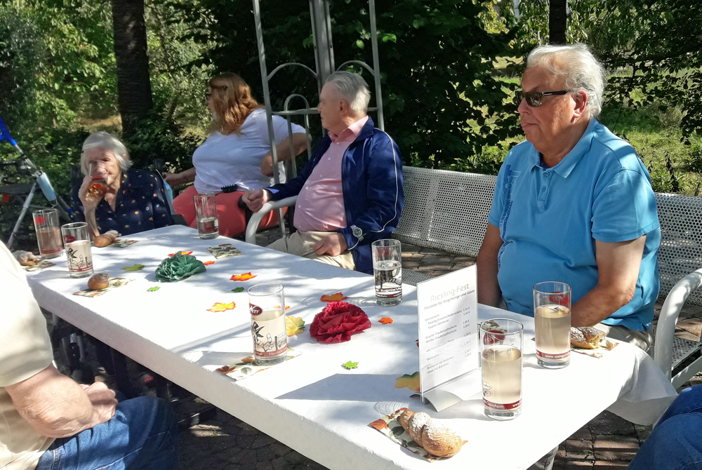 Schunkeln, schlemmen und einen leckeren Wein genießen: Am Samstag, 19. September 2020, fand in der Senioren-Residenz Stankt Sebastian in Dudenhofen ein echtes Pfälzer Rieslingfest statt. Die Mitarbeiterinnen und Mitarbeiter vom Betreuungsdienst und der Küche hatten das Fest organisiert und umgesetzt.