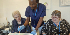 Die Gäste versammelten sich auf dem passend zu Italien in grün-weiß-rot geschmückten Außengelände. Dort erwartete sie ein fröhliches Programm: Zum Festauftakt begrüßte Einrichtungsleiterin Ines Schwan alle Anwesenden freudig. Gut eingestimmt stieg die Laune weiter mit italienischen Hits aus mehreren Jahrzehnten, live vorgetragen von Alleinunterhalter Gino Pellegrino. Auch Mitarbeiter Oliver Plän vom Betreuungsdienst zeigte sein Talent als Animateur – er sorgte für Lacher, indem er die Feiernden zum Singen und Schunkeln brachte mit dem Schlager „Zwei kleine Italiener“ von Georg Buschor und Christian Bruhn.