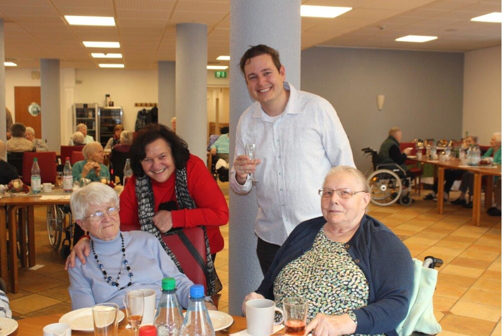 Die Bürgermeisterin von Schifferstadt, Ilona Volk, und den Beigeordneten Patrick Poss kennen die Bewohnerinnen und Bewohner bereits als beliebte Gäste: Umso größer war deren Freude, die beiden in feierlicher Atmosphäre wiederzusehen. Beim Besuch der beiden hatten alle zusammen im hauseigenen Restaurant angestoßen und sich auf das kommende Jahr eingestimmt.